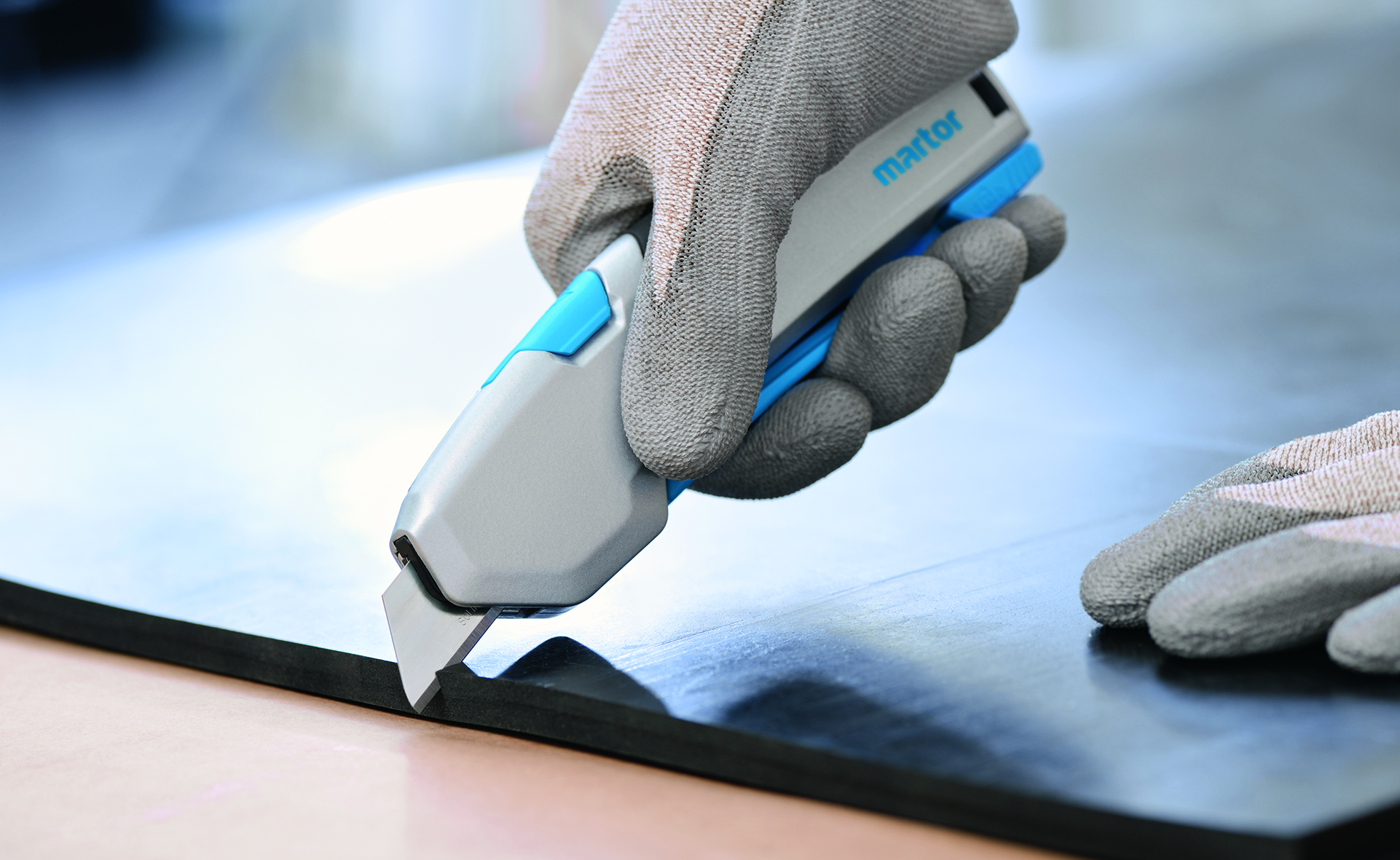 Changing the blade is simple and quick. You don’t need to open the handle, since the used blade is actually directly “offered up” using the blade change button and the lever so you can remove it effortlessly. Since each blade can be used from two sides, you simply need to turn it over and put it back in place. Or take advantage of the wide range of optional blades to expand your applications for your safety knife. Just as convenient: the MARTOR training and instructions guide, which are available for all cutting jobs after your purchase.
