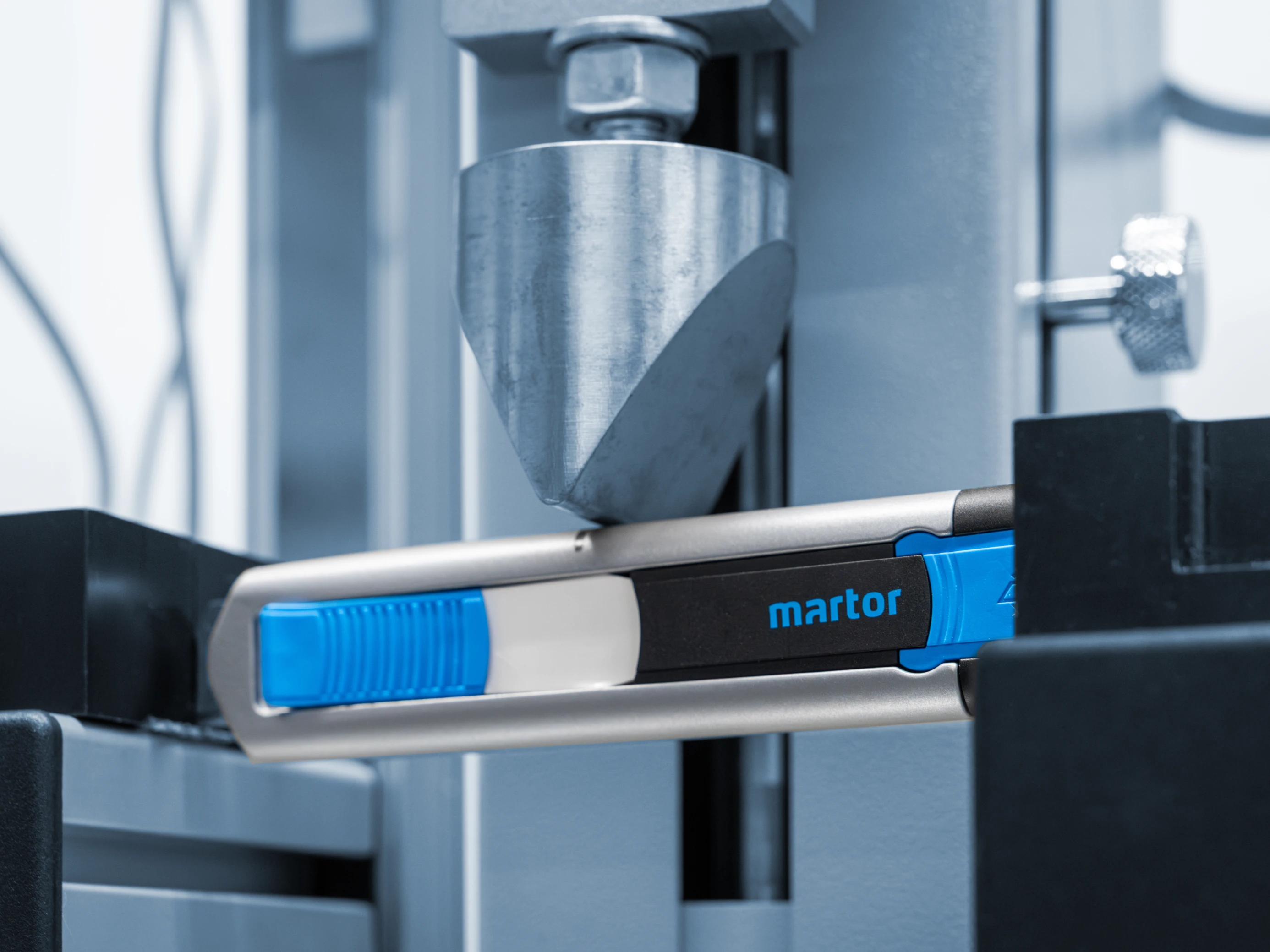 Beim professionellen Schneiden wirken große Kräfte auf das gesamte Werkzeug ein. Wir testen im Labor sowohl die vertikale als auch die horizontale Belastung – und sind erst zufrieden, wenn unsere Sicherheitsmesser das alles locker wegstecken.