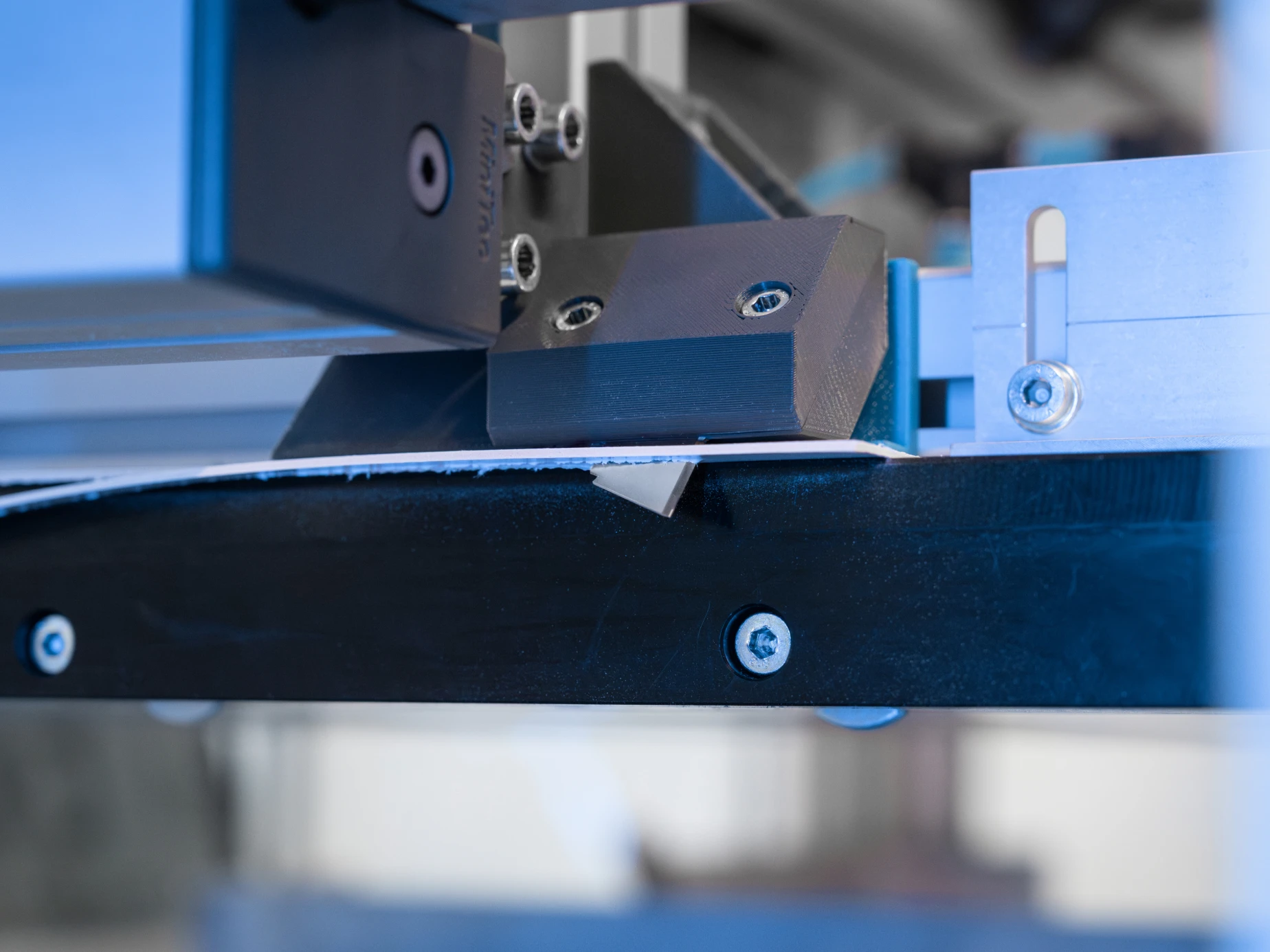 Im Schneidtest zeigen unsere Qualitätsklingen ihre Leistungsfähigkeit. Auch nach dem Schneiden vieler Meter Material müssen sie ihre Schärfe bewahren, damit die Arbeit weiterhin leichtfällt. Wir messen den Kraftverlauf bei unterschiedlichen Materialien und kitzeln so die letzten Prozente Verbesserungspotenzial heraus.
