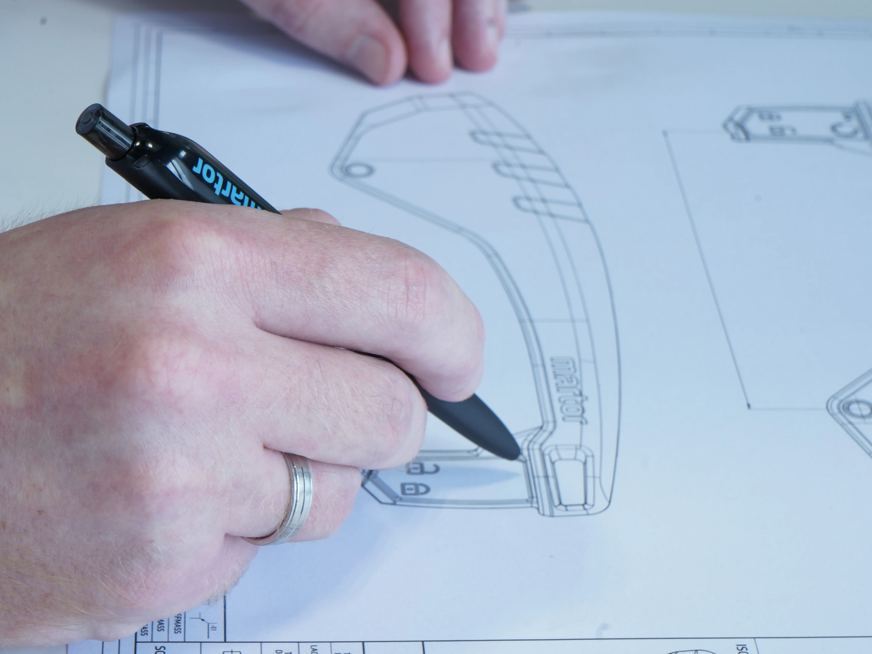 Every beginning is creative. Once the starting point is clear, it is time to experiment and visualise. Many sheets of paper and pens later, we have real plans that our specialist departments can use to continue with the planning process. We quickly realised that something completely new was needed – safety knives with an open design.