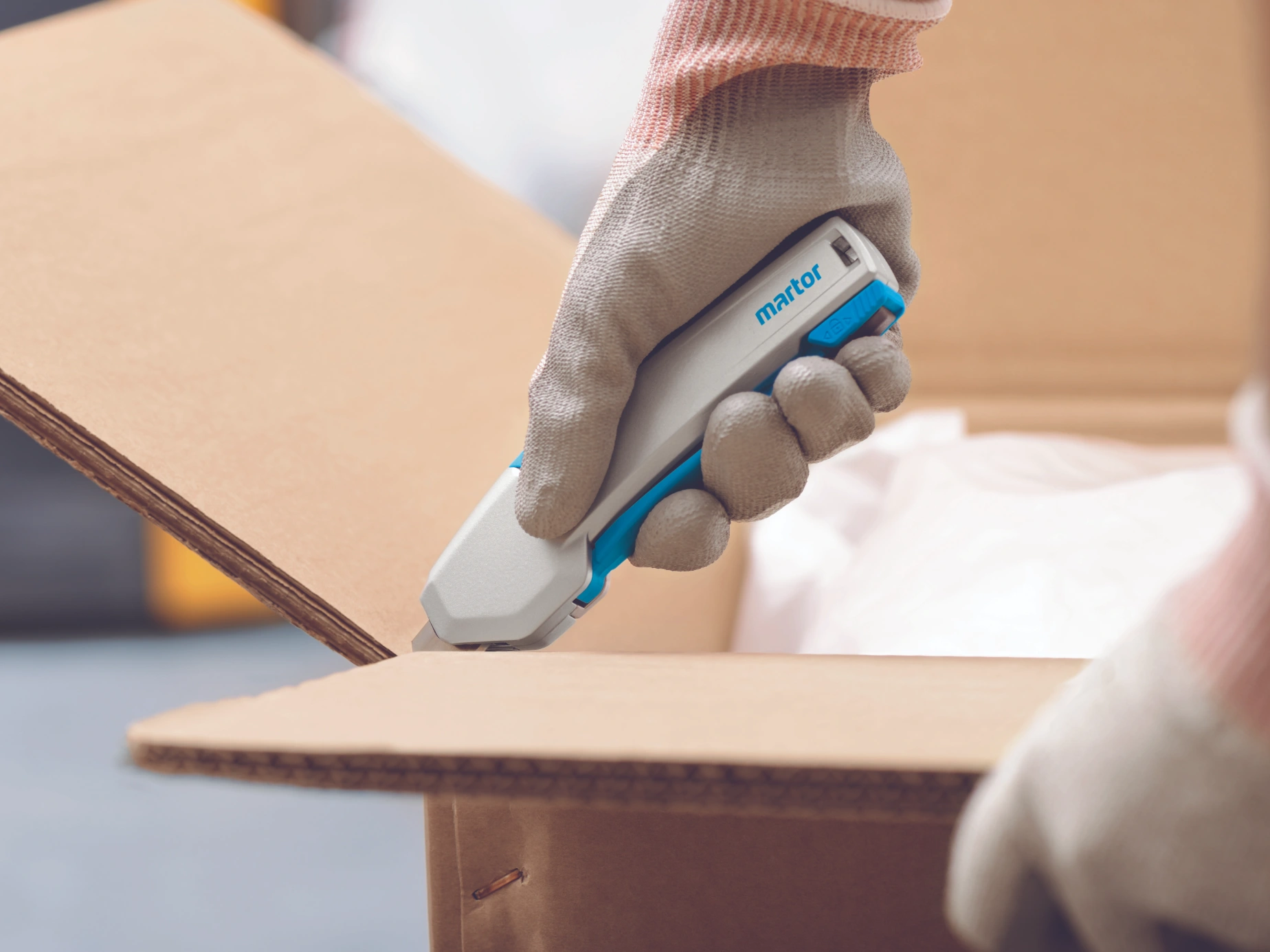 Cardboard boxes are the universal transport container. They come in a wide variety of sizes and wall strengths. But one thing is always the same: you want to open them to get to the contents. Or vice versa: you cut them to size to transport less air. With MARTOR cutting tools, this can be done safely and efficiently. Especially if you position the blade at a 45° angle.