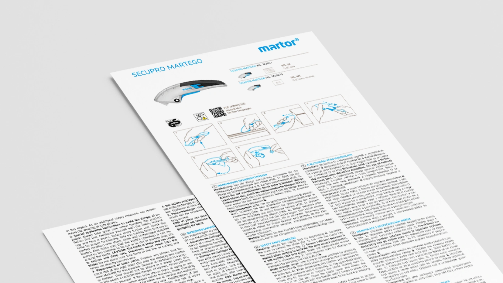 User manualsAt MARTOR, it's a clear-cut matter. You will find the instructions directly with the cutting tool or – in even more languages – on the website.