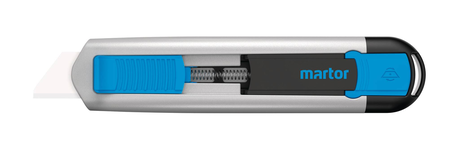 刀片自动退缩功能确保可在极大程度上确保避免割伤。开始切割后,请将大拇指离开滑动块。刀片可在离开切割材料后立即退缩至手柄之中。